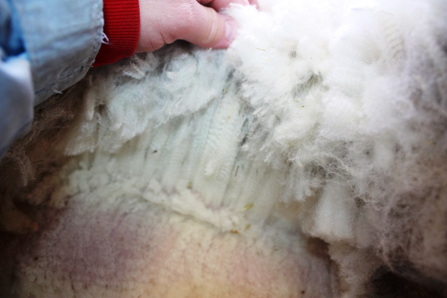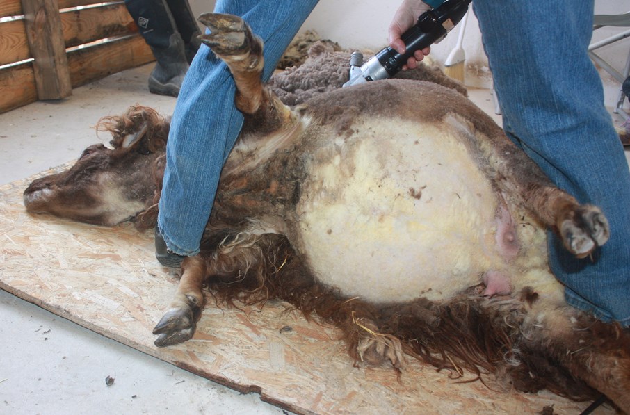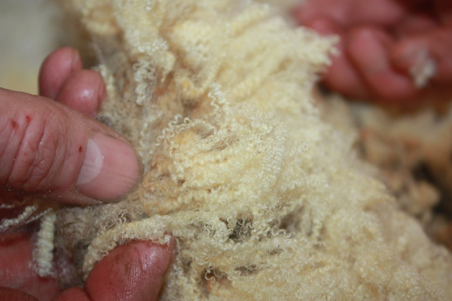 Because sheep spend a fair part of their day laying around chewing their cud the wool on their belly gets caked with mud and dirt. This wool is usually removed from the fleece and discarded.