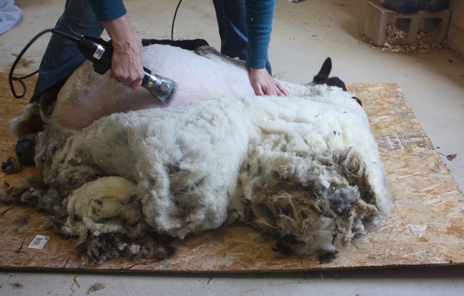 During the course of the shearing the sheep gets propped, stretched and bent into all kinds of crazy positions. I call it sheep yoga, the stretching helps to smooth the skin of the sheep. Sheep skin is very soft and pliable, so if you tug on the wool while clipping you could pull the skin up into a wrinkle and clip the wrinkle right off.