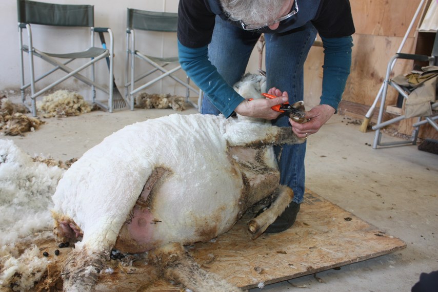 I love to watch a good shearer work, the sheep stays nice and calm and the shearer knows just how and where to help stretch the skin to avoid nicks and cuts. When nicks do occur, most will heal in a day or two.