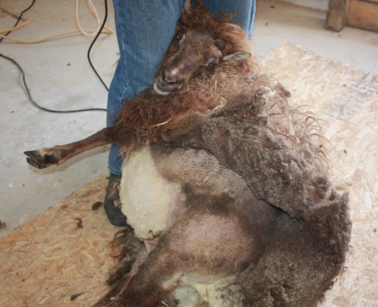 Next up, Matilda. Icelandic wool can be hard to shear because it felts easily. The felted areas, like where Matilda’s coat fit around her neck, were a challenge for the clippers to get through. It’s a delicate balance getting through the tough felt without cutting the delicate skin beneath.
