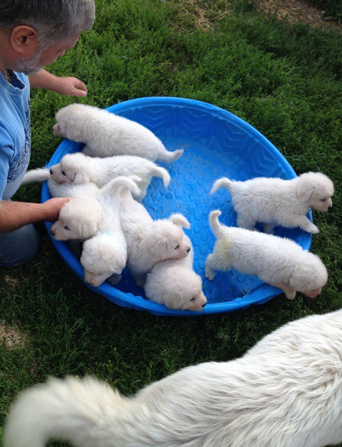 I thought it would be a great idea to put them all back in the pool to see how big they look now. Â Easier said than done. These photos were taken in mere seconds. With 8 pups sometimes seconds is all you get.