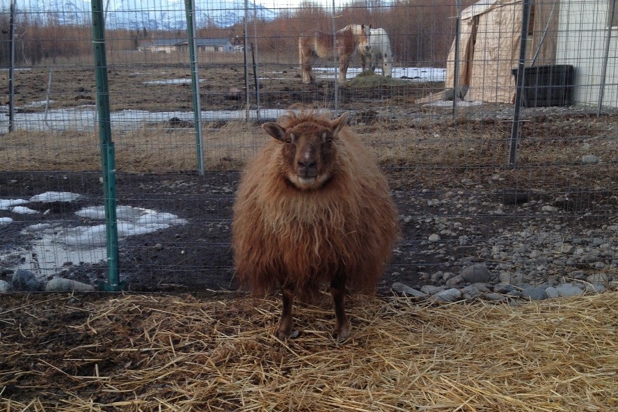 One of out Icelandic ewes, our herd queen, always thinks the grass is greener on the other side of the fence.