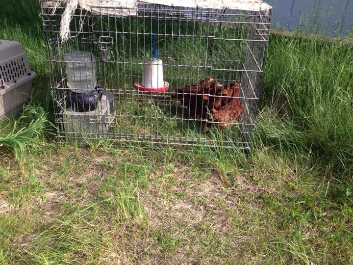 Al is so funny about “his” chickens. We have been trying to build a chicken tractor, a small mobile pen, but we are both really busy working long days so it just wasn’t happening as fast as we would like. So we improvised.