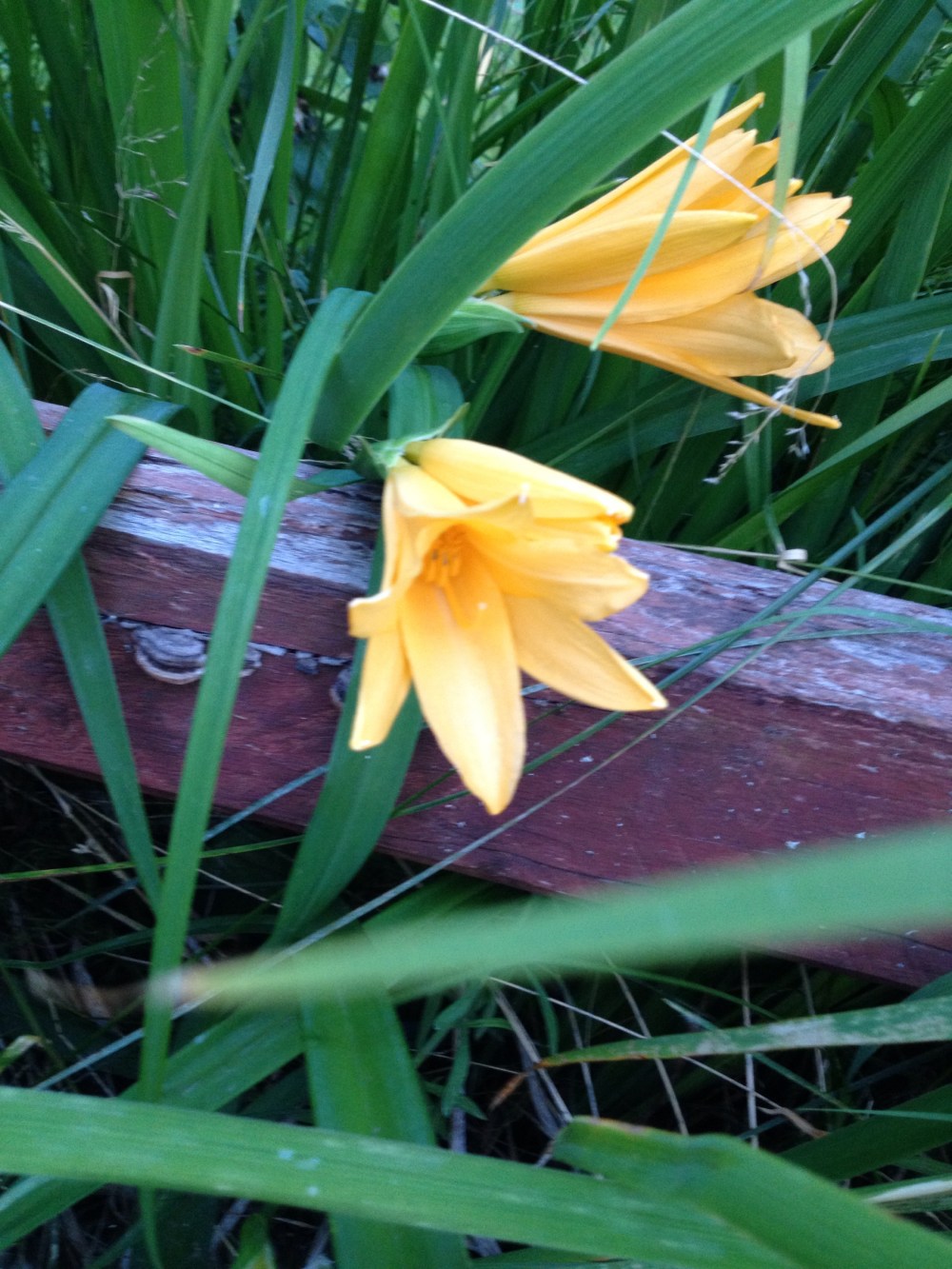 At the end of the day , coming up the porch, I found this pretty surprise tucked into the grasses and flowers in my neglected flower bed.