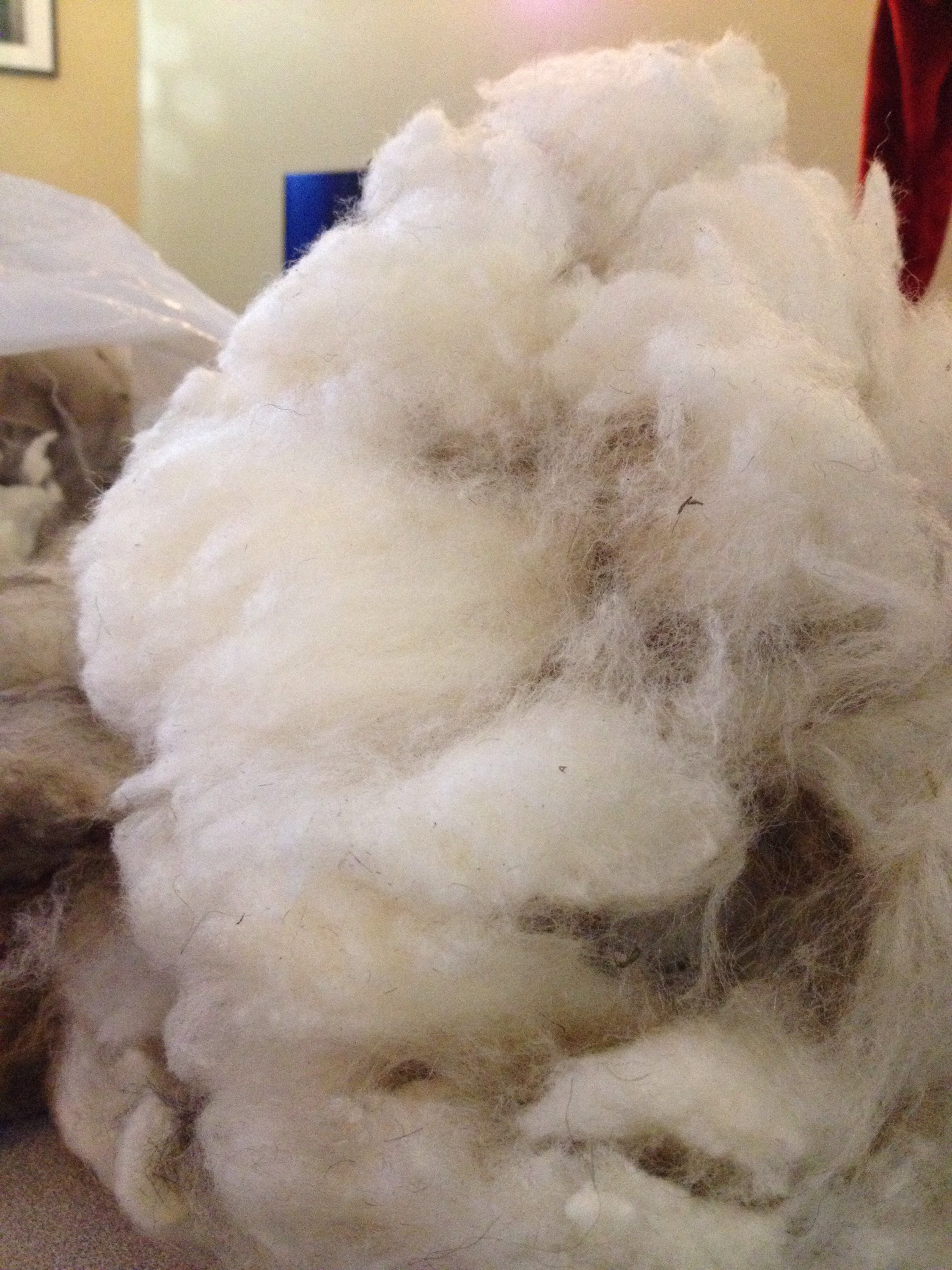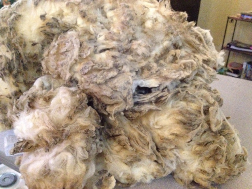 Betty is a 3 year old Icelandic sheep with fleece that has cream under coat and an outter coat that varies from tan to light gray. This is a very big, bulky fleece $40