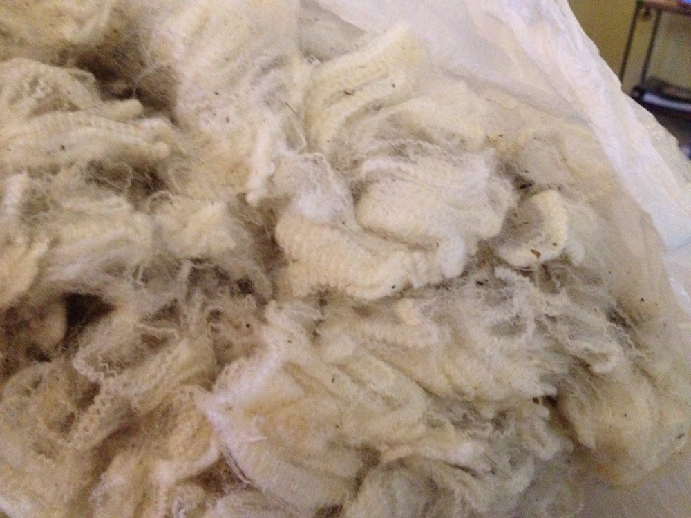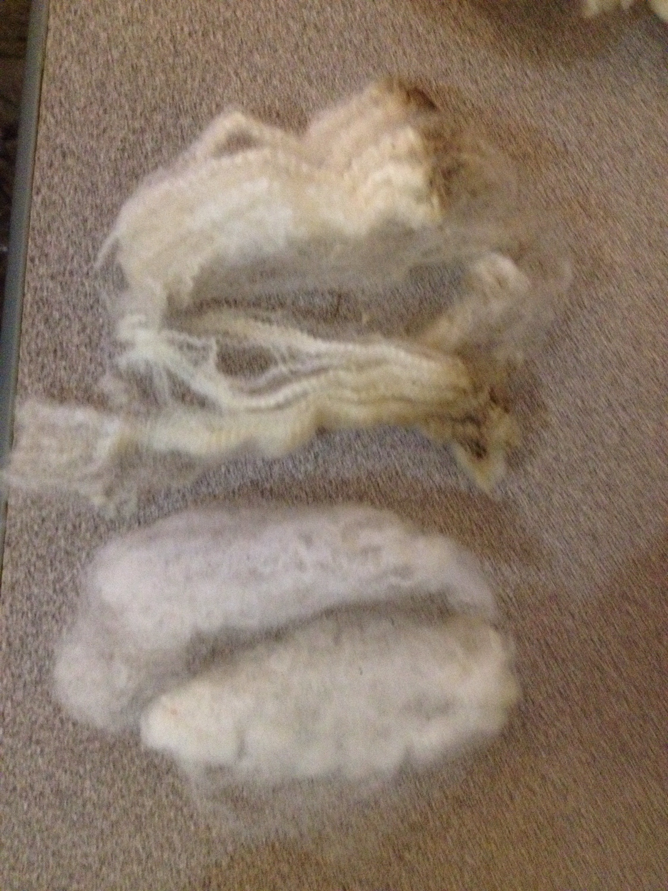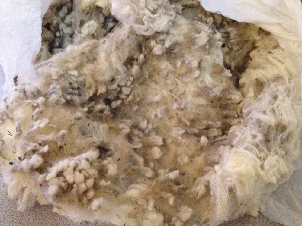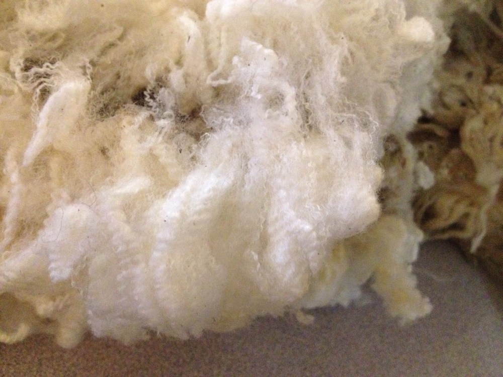 Katherine is a Cormo Sheep with good crimp and nice staple length. Coated for most of the year, there is dirt at the tips but minimal VM, loads of crimp and it washes up beautifully $40