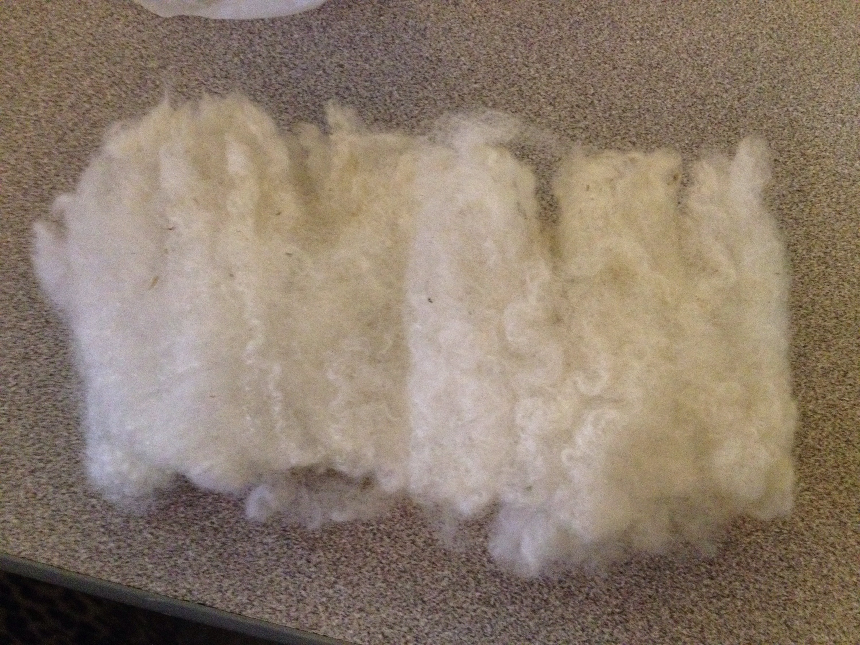 Missy is another fine fleeced Cormo sheep. This fleece has lots of crimp. There is some dirt at the tips but very little VM, and it cleans up beautifully. $40