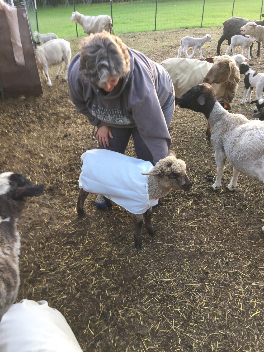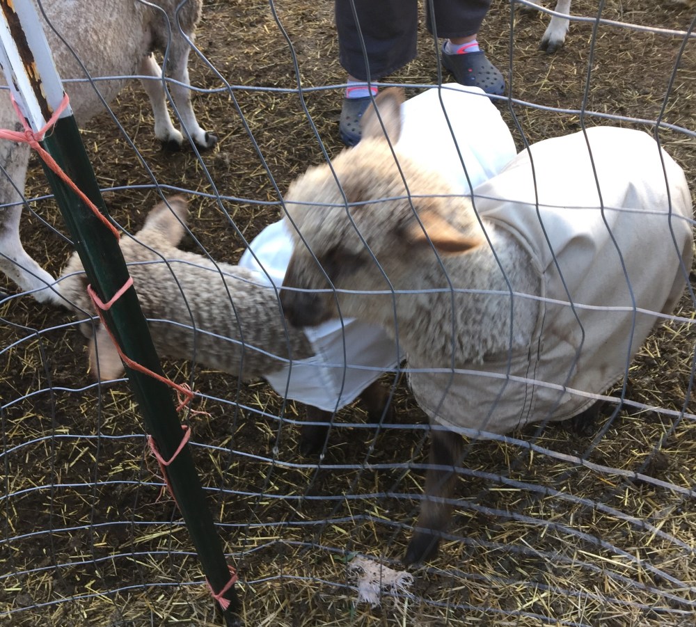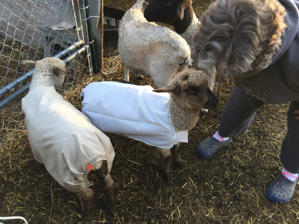 Princess and Duchess are hanging out with the mommas and other lambs but they still flock to me and let me handle them whenever I want which makes putting their coats on a breeze.