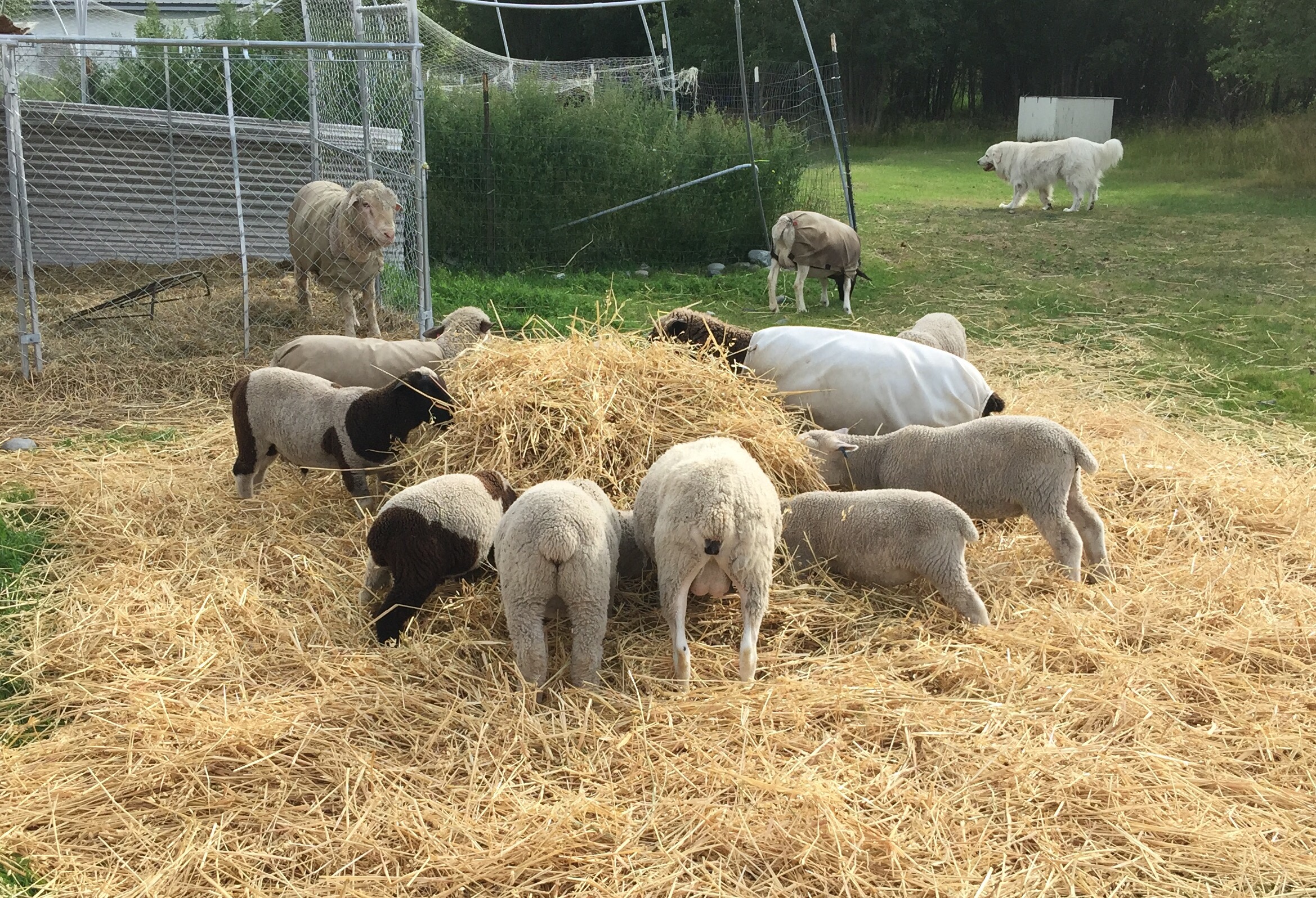 But it’s not only about the puppies. We have naughty sheep too. They have decided to consume the remains of a straw bale