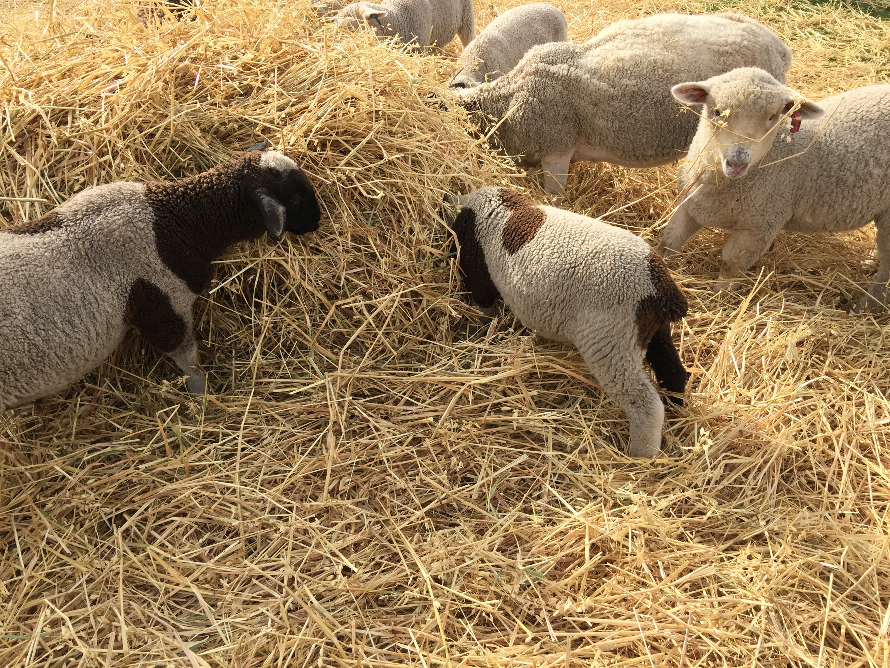 One lamb appears to have lost her head. You can see Berthas pretty face over our headless spotted sheep.