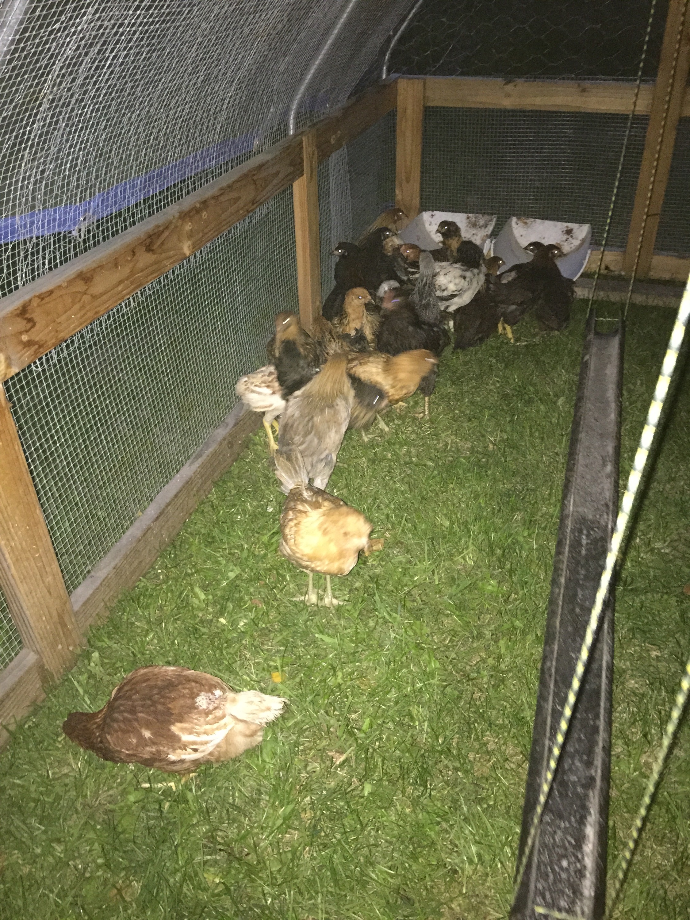 The newly vacated chicken tractor already has new occupants. The juvenile layers have graduated to the great outdoors where they can learn the fine art of scratching, pecking, and foraging before joining the main flock. I feel it’s good to toughen them up before subjecting them to hen-pecking biddies in the big girl coop.