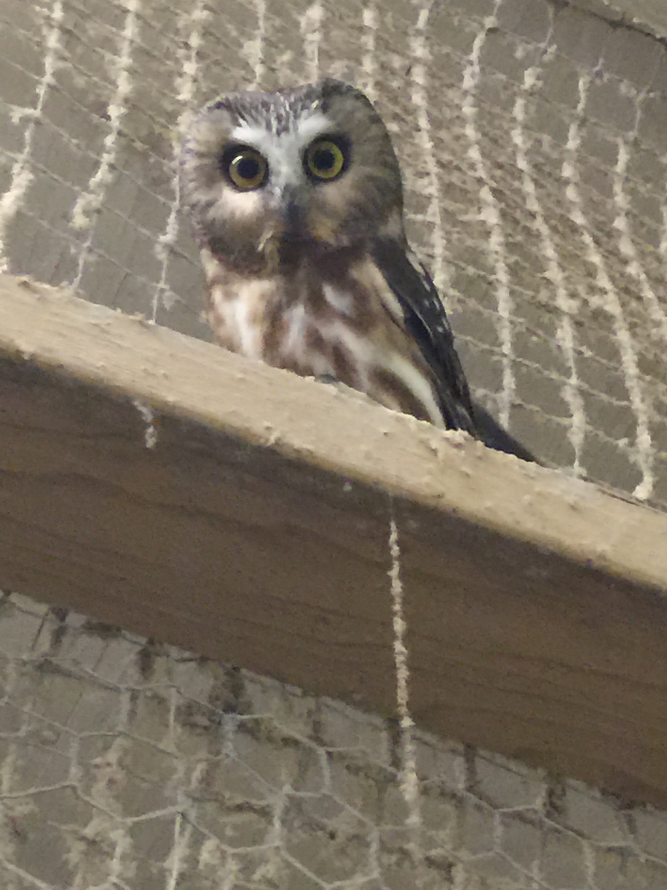 Saw-Whets are tiny little owls, so they pose no threat to any of our critters and they are pretty cute too. Hopefully this little friend will feel like sticking around for awhile.