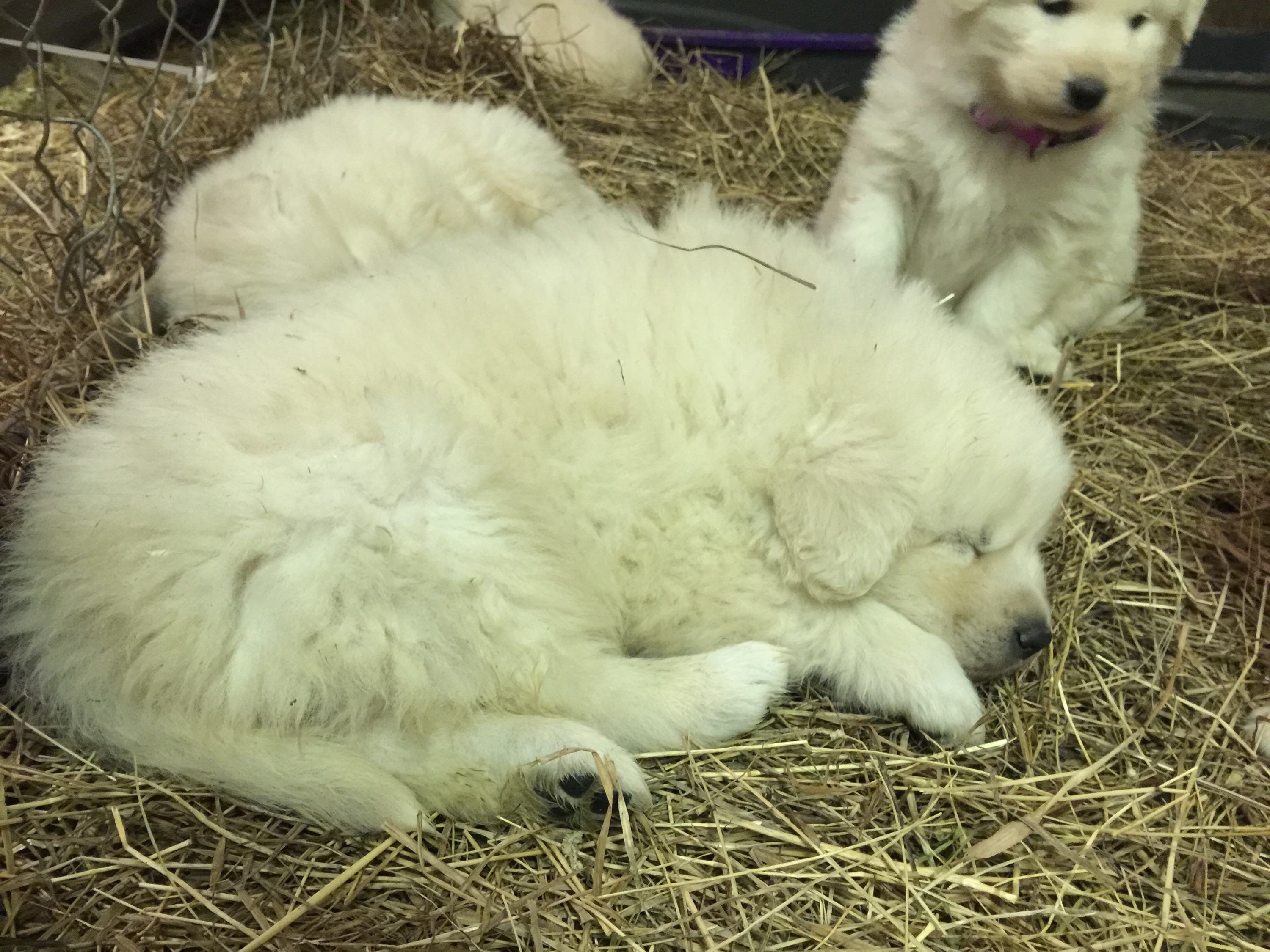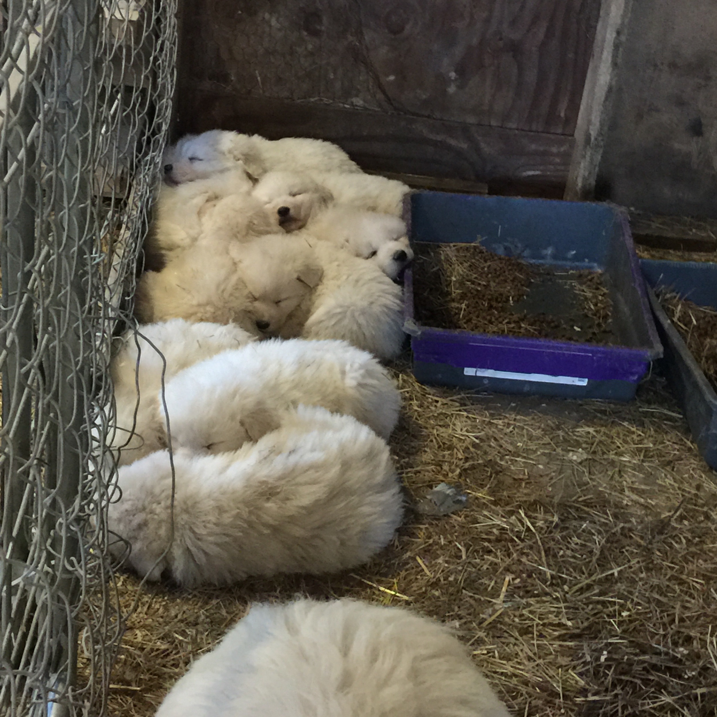 These purebred Maremmas were born in the barn and are growing up with sheep and poultry. Parents and grandparents are working onsite.