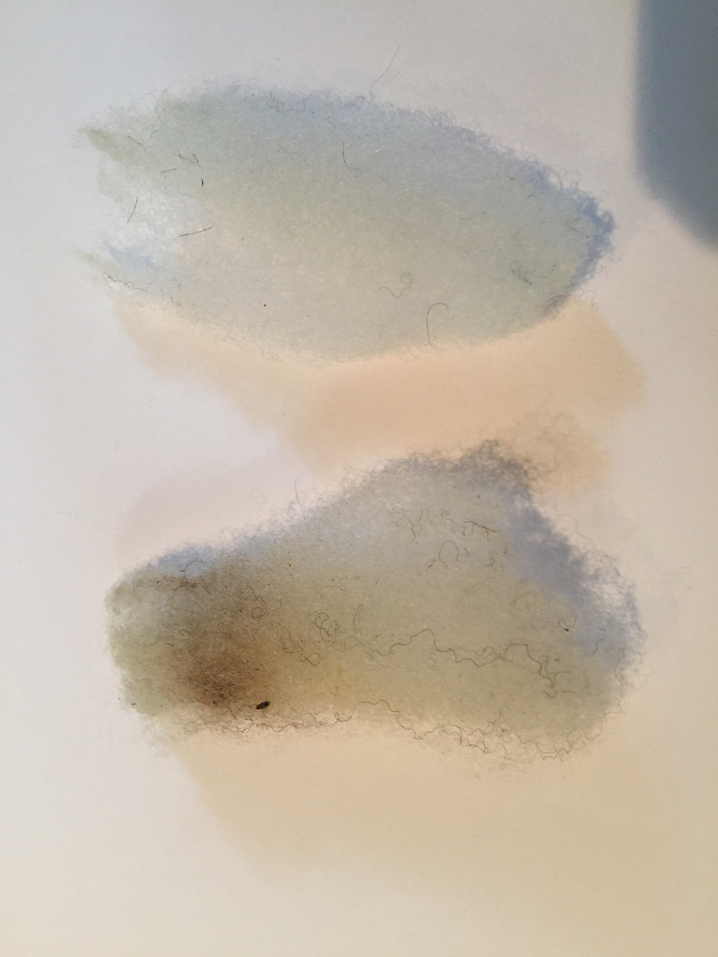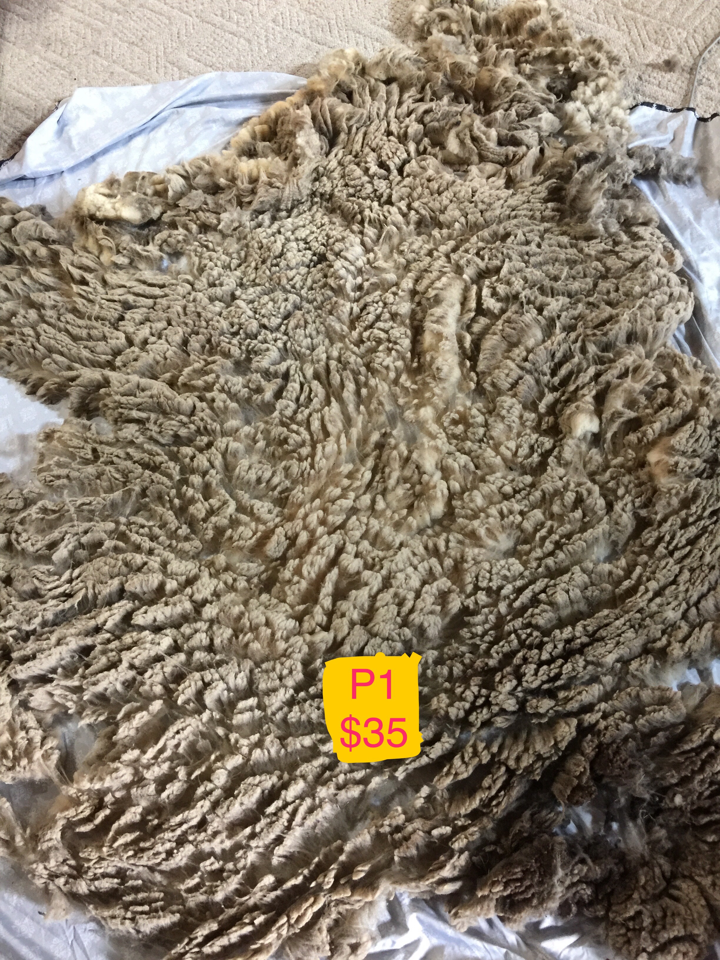 This raw fleece weighs 5.25 lbs, is relatively clean (for an uncoated fleece) and rinses out pretty bright white. $35 for the whole fleece.