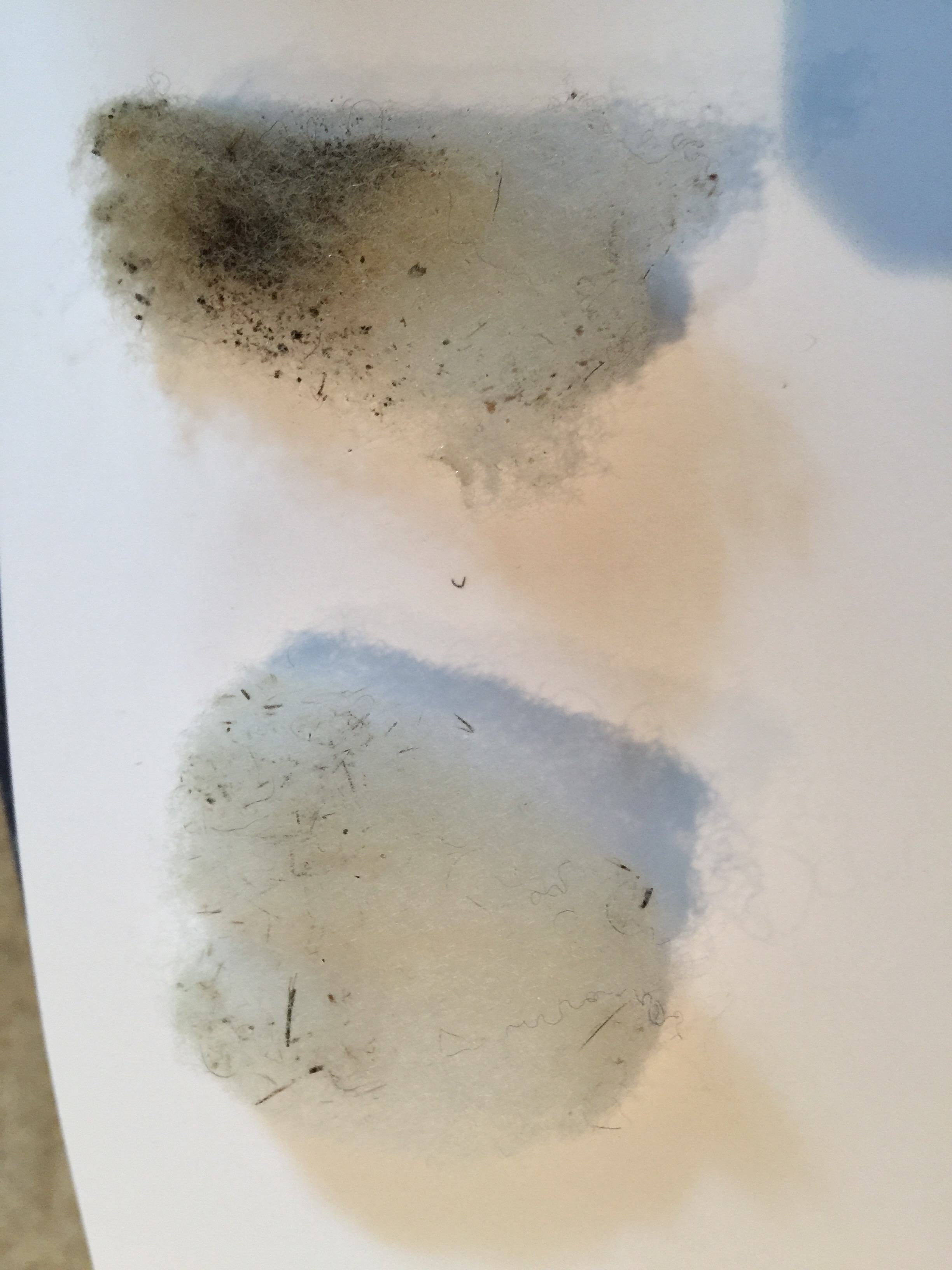 This fleece has more vm than the other, is 5 lbs, and will take some combing to remove the bits. Perhaps some of the vm will blow out prior to washing. This fleece is $20.