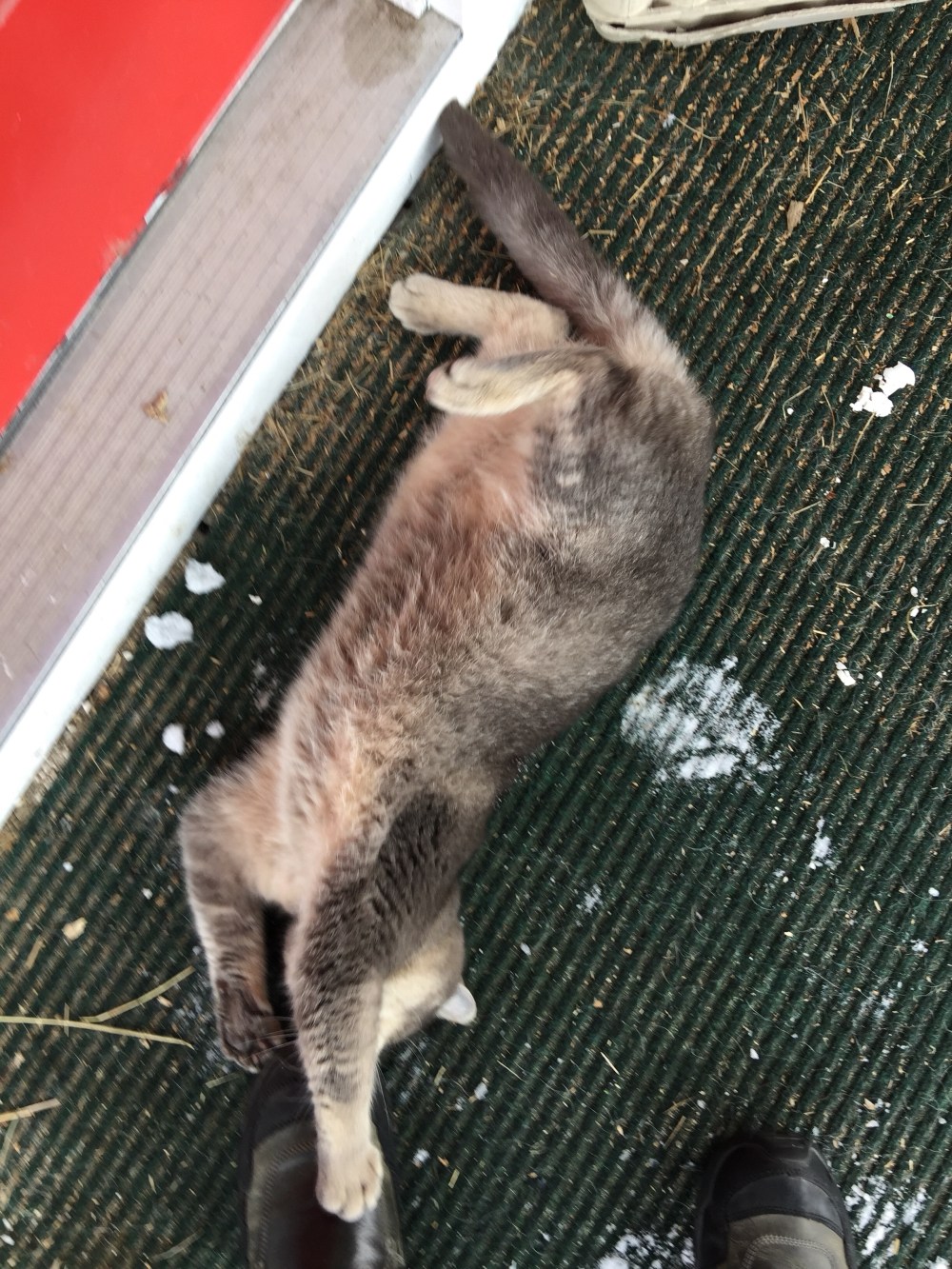 There are many theories about barn cats. Some say that it’s abuse to leave a cat in a barn but they don’t know me and they haven’t seen how much love this cat gets.