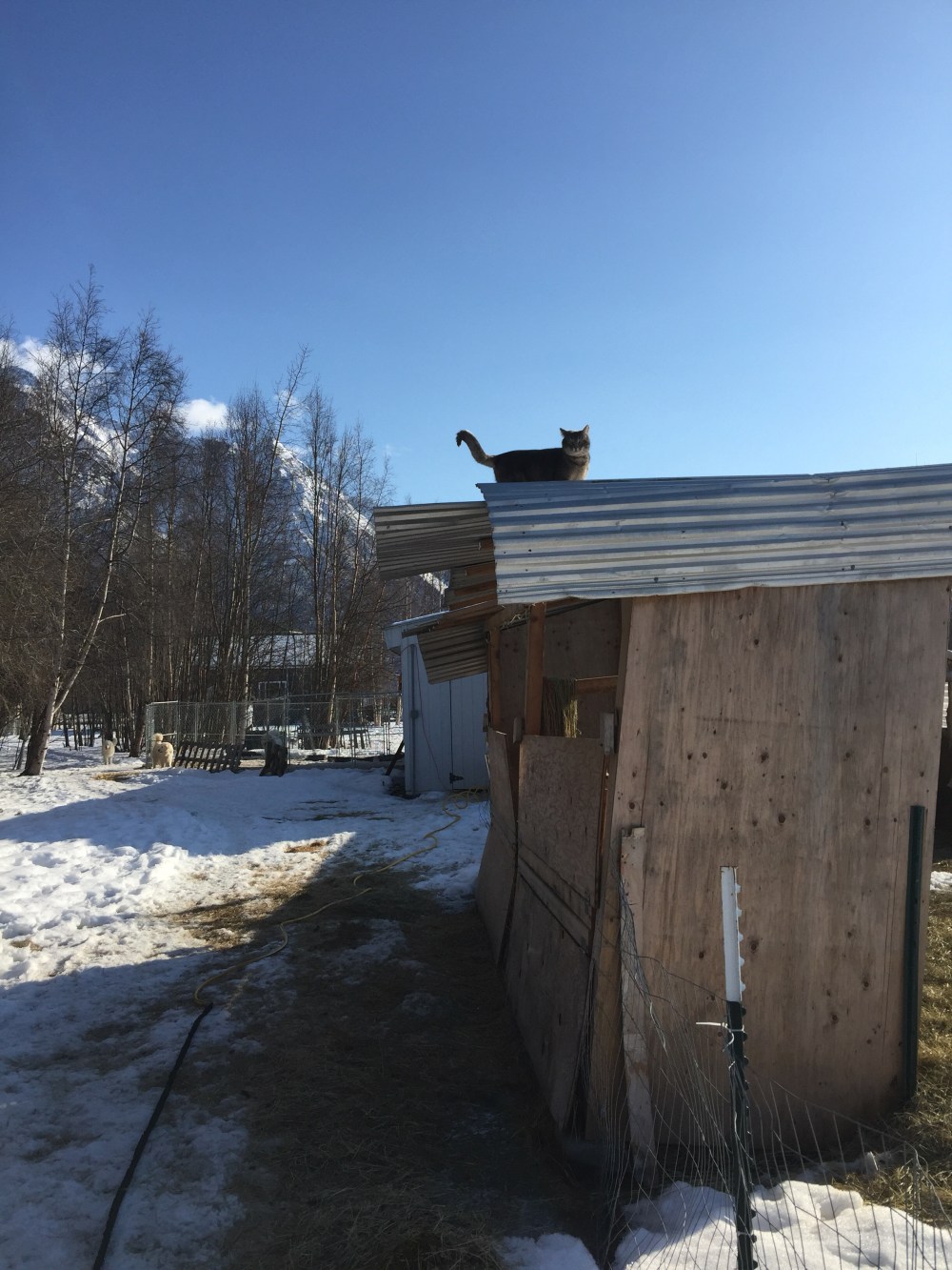 Even Bloo was keeping watch from atop a sheep feeder. He is such a character. I’m sure if there had been a fight he would have gone to help his dogs. At least I can’t trip over him when he’s 8′ in the air.