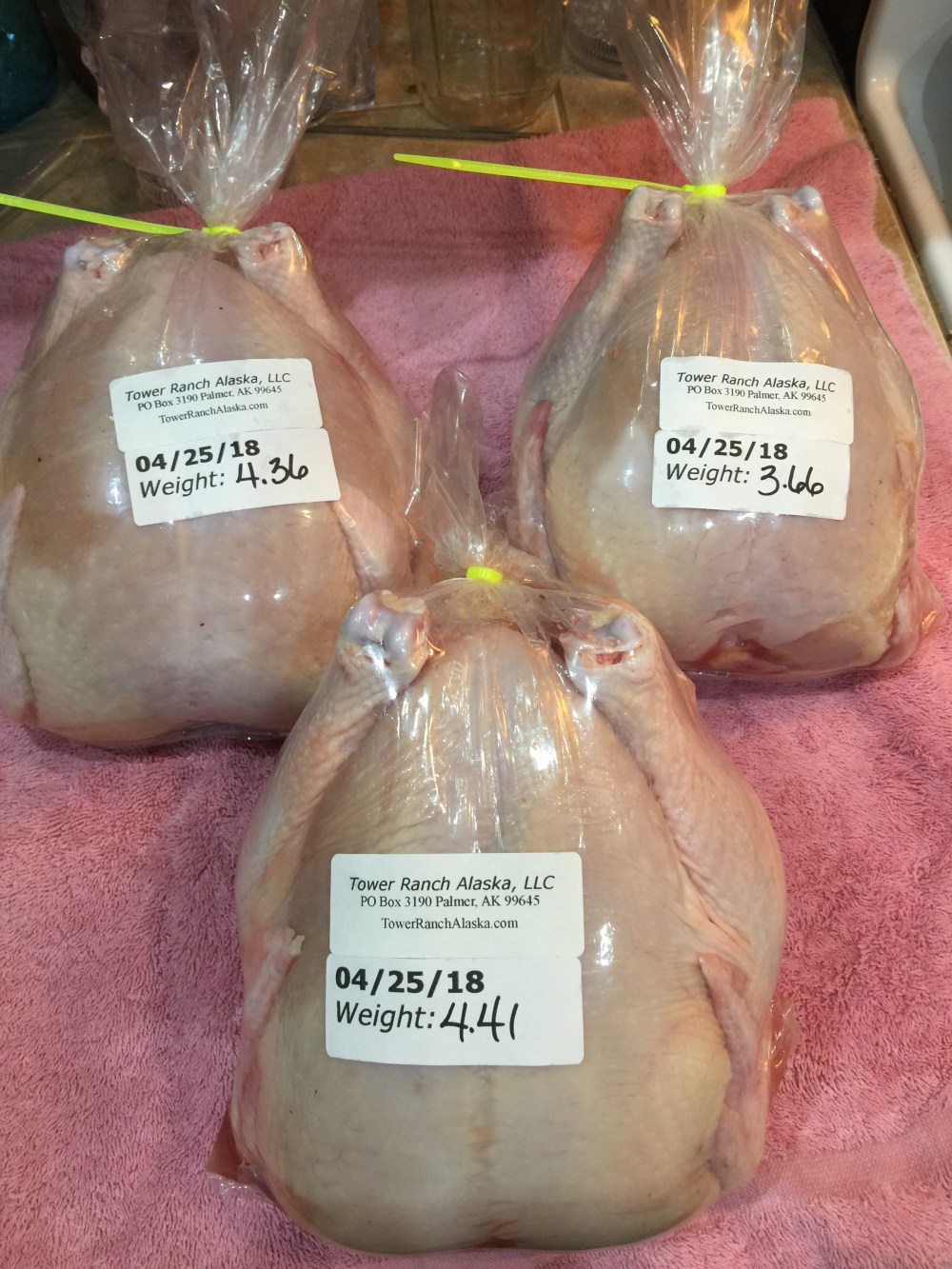 Uncategorized Roasting Chickens Posted by TowerRanchAlaska on May 19, 2018May 19, 2018 We just finished up another batch of locally grown chickens. $3.50/lb plus a $5 processing fee. Share this: Click to share on X (Opens in new window) X Click to share on Facebook (Opens in new window) Facebook Like Loading... Related