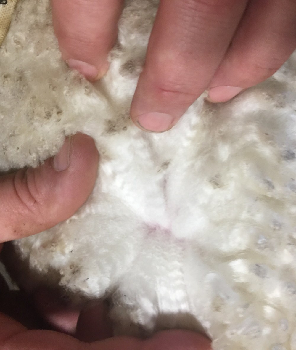 The tallest by far, also one of the wildest. He was a close 2nd at 69.3 lbs. he is the youngest, his wool is a slightly shorter staple but he’s only 2.5 months old so too soon to tell.