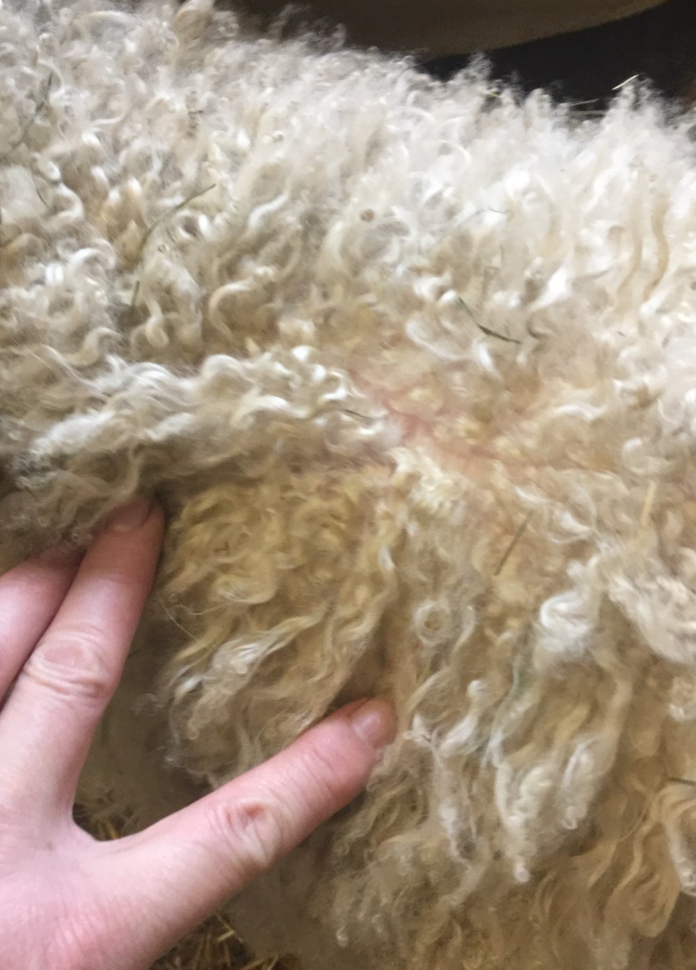 This guy is not shy about groceries! 69.4 lbs is our heaviest lamb of the day. Where Groot is a 10 Star Lord is only a 9 so he will be a fiber wether in our flock. His tips have lightened and his rump is slivering but he has great locks and crimp and consistent color all the way to his skin.