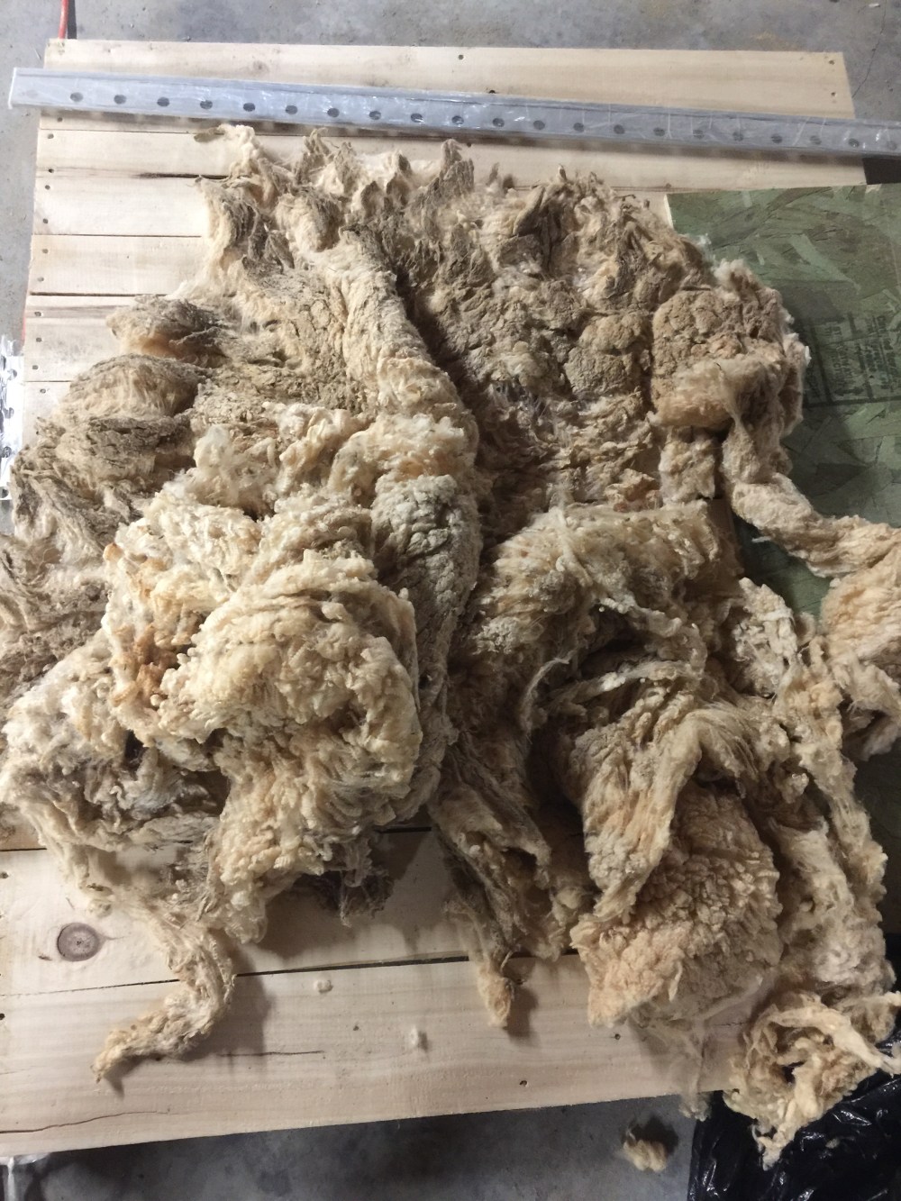 Betty is a 6 yr old Icelandic with great staple length. Her fleece will not tolerate a coat so there is some vm. Her undercoat is soft and crimpy. She didn’t get wet and I don’t really smell smoke either. She produces a thick heavy fleece. $40