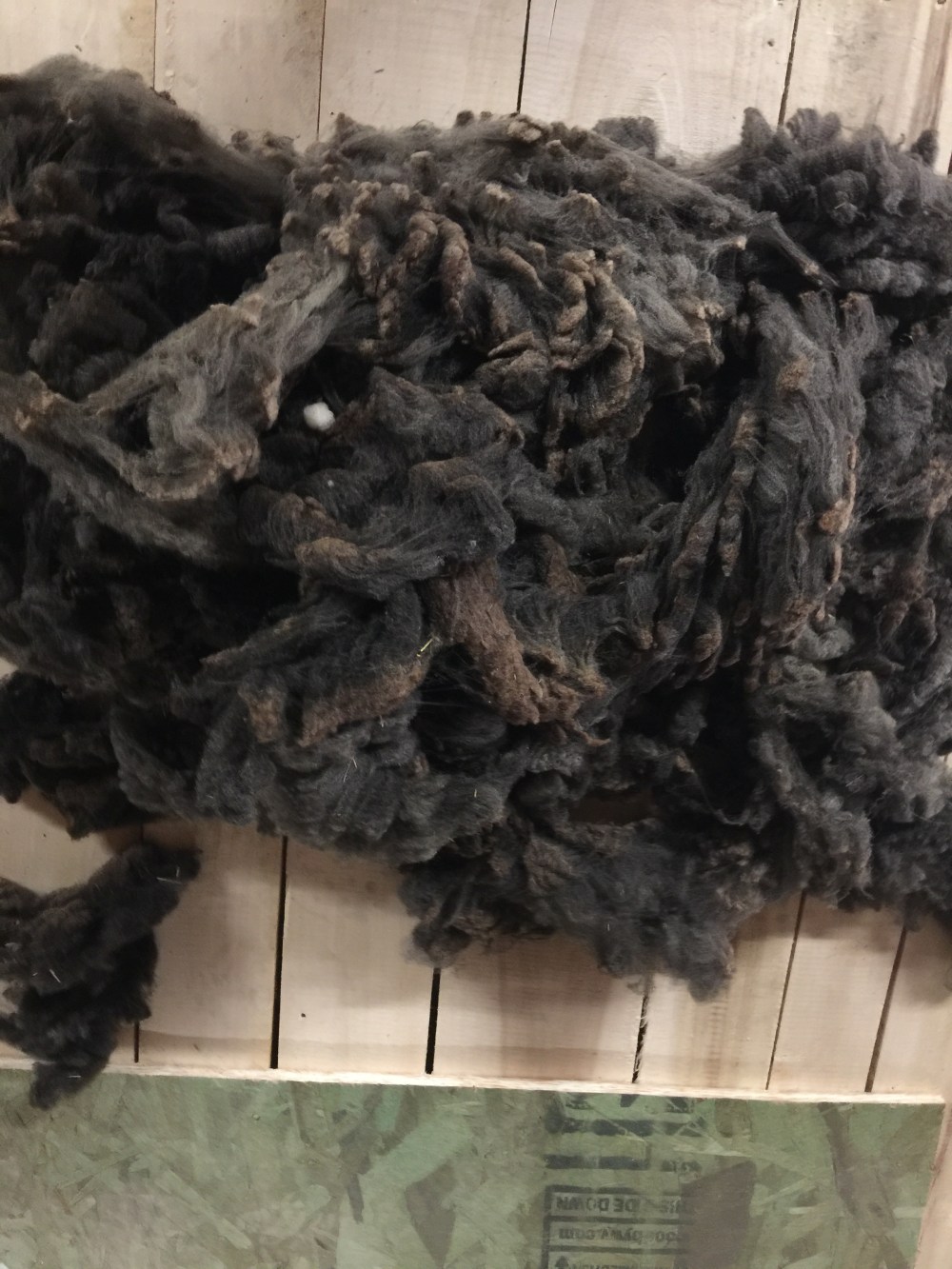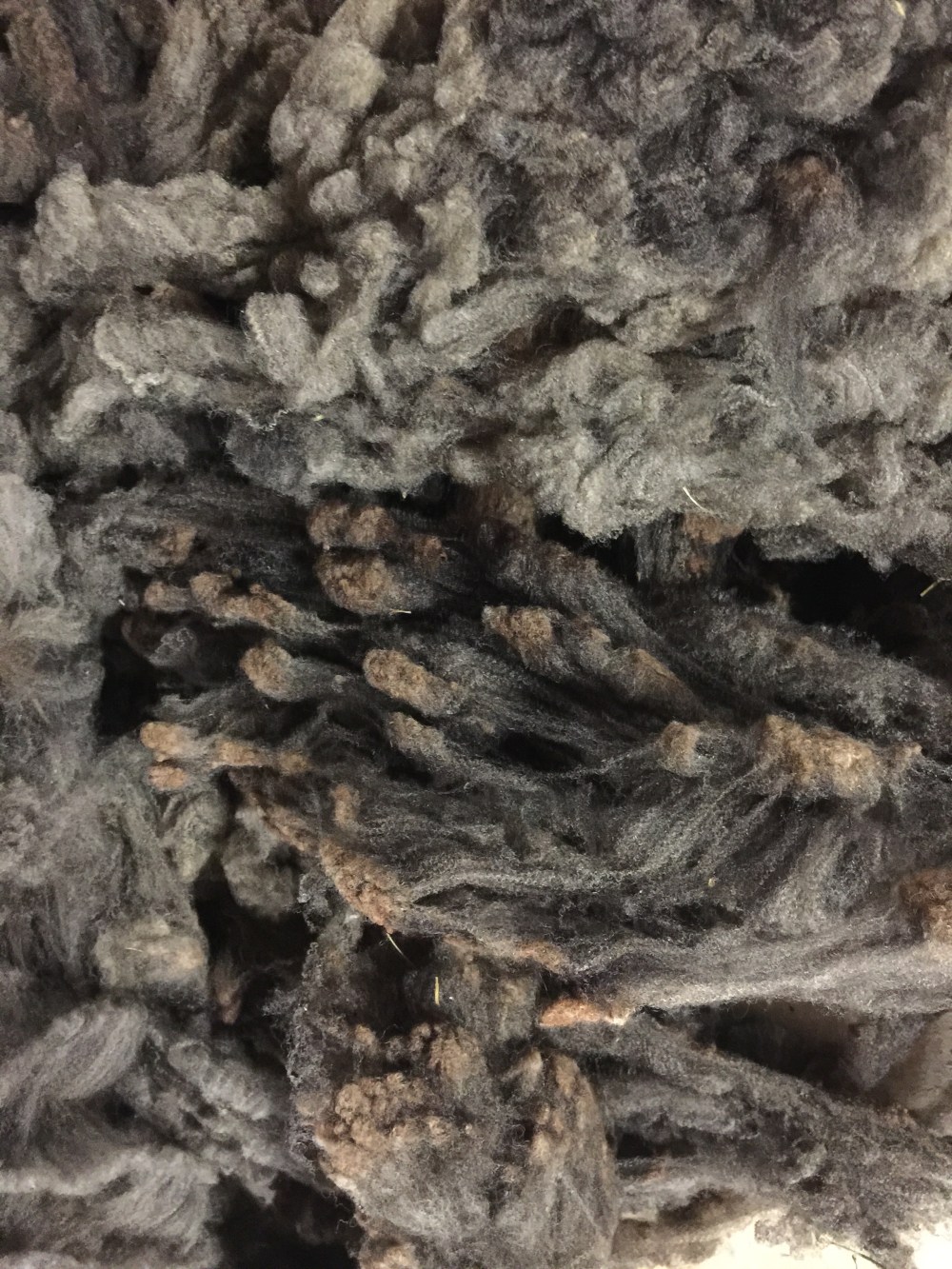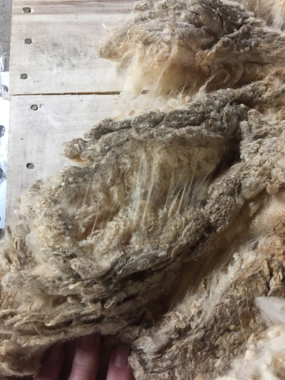Rambouillet ewe is super fine and crimpy. It’s a shorter staple length and color varies from deep mocha to grey. This fleece is $40