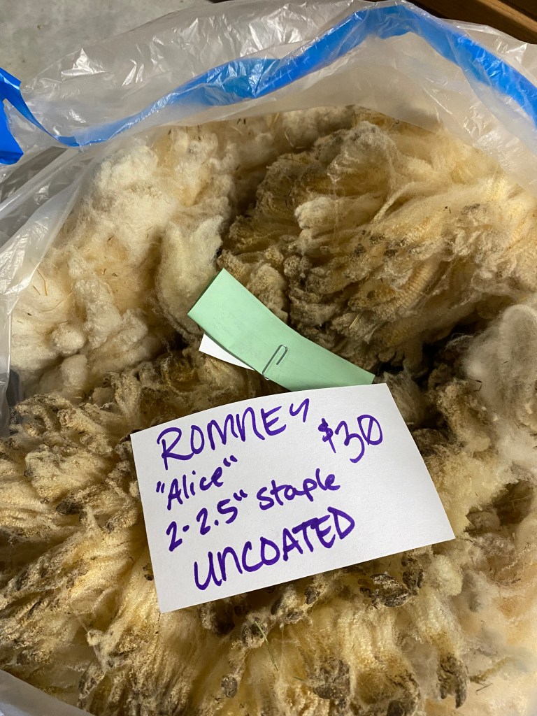#25 – Richter This fleece is 5.5” staple! it’s fluffy, it’s fine, and man does it Twang! Romney yearling $50