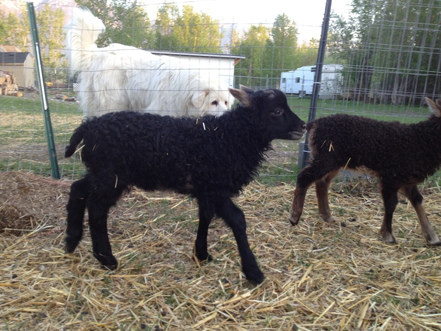 Matilda is the leader of the pack. Always at the front of the parade she is the first one to strike out to graze and leads the charge back to the barn at feeding time. Matilda cam to us as an adult from a small farm nearby. She did not live with dogs in her pen but this is Alaska and we do have a number of predators so her previous home did have dogs on the property.